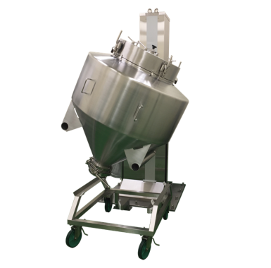 ・脱着式コンテナにより原料投入、混合、次工程への投入が1台の装置で可能。コンテナは原料保管用途にも利用可。