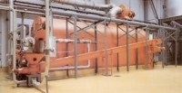 中空加熱チューブバンドル(加熱管の集合体)を回転させ、撹拌流動化乾燥を行います。熱源は蒸気で間接加熱乾燥する為、熱劣化の少ない製品を造ることができます。