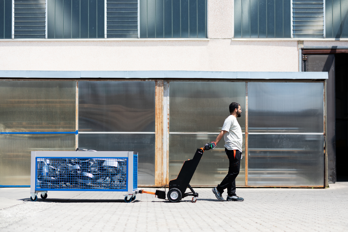 Movicartは、車両付きカート及びレール付きカートを安全にかつ省力で押す・引くことができるコンパクトな電動カート移動装置です。サイズ・高さ・重量の異なるカートを簡単に移動可能で、フォークリフトを使わずに工場内の搬送作業を効率化します。